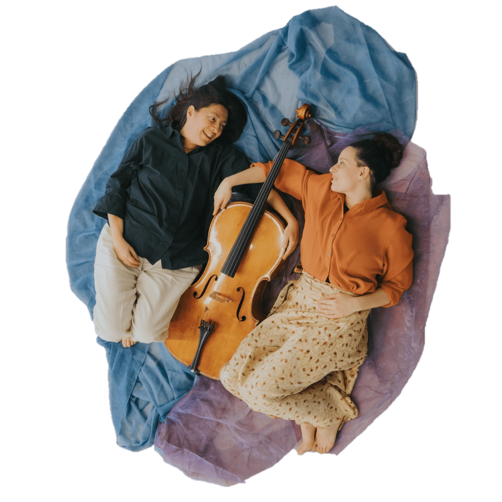 Alexandra et Emmanuelle se sont d’abord rencontrées lors d’activités de médiation culturelle en CPE dans le cadre du projet Graines de sons. Rapidement, leur complicité et leurs attraits communs pour le non-verbale et la sensorialité du tout-petit les ont réunies. Dans cette synergie, elles créent leur premier spectacle Le chemin aux mille pousses; une performance interactive de danse et de musique qui s’inspire de plantes et de fleurs qui poussent dans nos sous-bois. Leur seconde création, À corps d’âges, est un spectacle à destination des bébés et tout-petits qui prend sa source d’inspiration dans l’ouvrage de Daniel Stern Le journal d’un bébé. Désireuses de rejoindre plus d’enfants, les deux artistes se plongent actuellement dans À plein tube, une nouvelle création à destination des enfants de 6 à 10 ans.